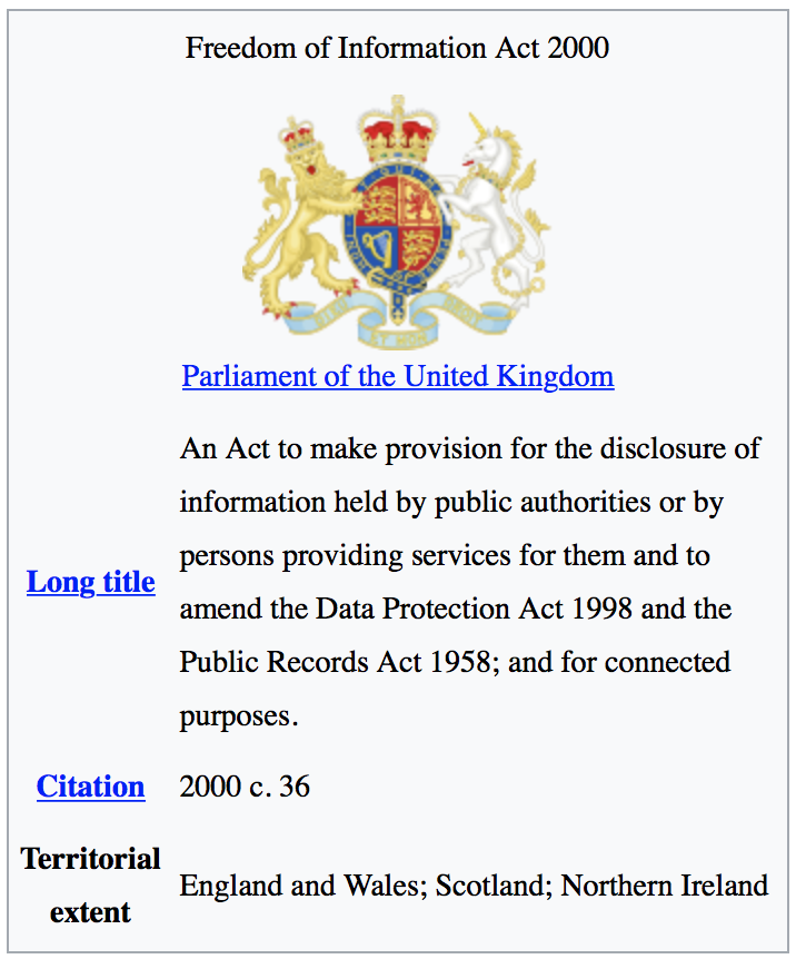Στο Ηνωμένο Βασίλειο το Κοινοβούλιο θέσπισε το Νόμο Για την Ελευθερία στην Πληροφόρηση το 2000 και θεσμοθέτησε το δικαίωμα του πολίτη να έχει πρόσβαση στη πληροφόρηση από κυβερνητικά τμήματα. Στις ΗΠΑ υπογράφτηκε από τον Πρόεδρο Lyndon B. Johnson στις 4 Ιουλίου 1966 και εφαρμόστηκε το 1967.