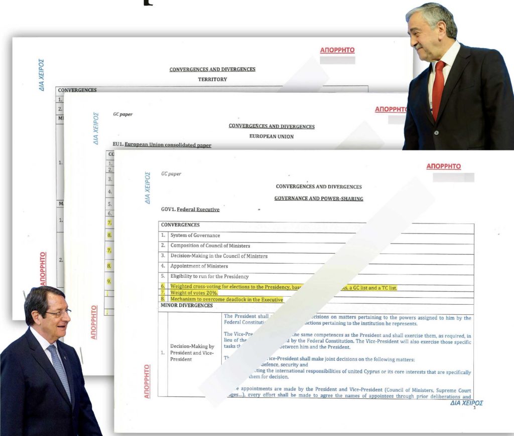 Το περιβόητο τρίπτυχο συγκλίσεων, ησσόνων διαφωνιών και μεγάλων αποκλίσεων που ετοίμασε το Προεδρικό αποκαλύπτει η «Σ». Το κεκτημένο των συνομιλιών μαζεμένο σε μερικές δεκάδες έγχρωμες σελίδες.