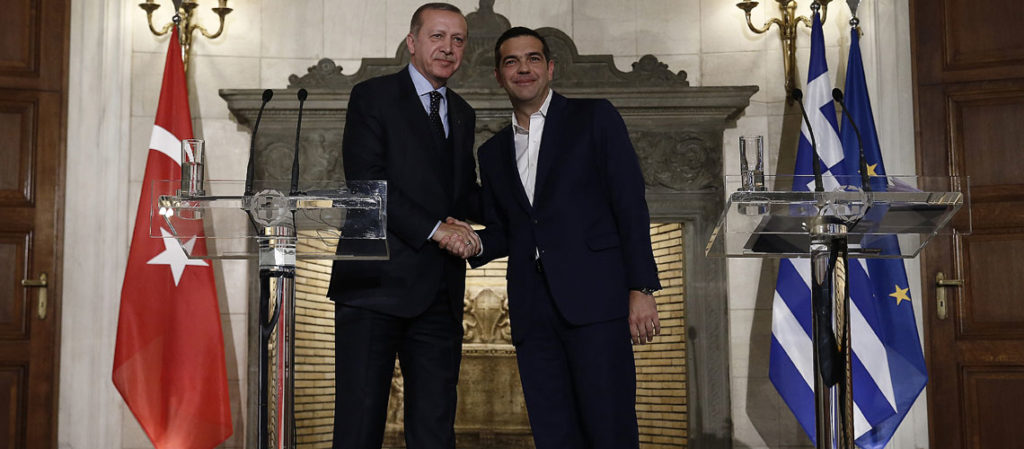 Πρώτο, έθεσε όλες τις «διεκδικήσεις» της Τουρκίας σε βάρος της Ελλάδος. Άφησε ανοικτό το θέμα της αναθεώρησης της Συνθήκης της Λωζάνης. «Στο θέμα της συνθήκης της Λωζάννης υπάρχουν εκκρεμότητες και θέματα που δεν κατανοούνται σωστά» είπε συγκεκριμένα. Ο Πρόεδρος της Ελληνικής Δημοκρατίας, Προκόπης Παυλόπουλος, δεν μπορούσε να αφήσει αναπάντητες τις τουρκικές παράλογες επιδιώξεις. Απάντησε λέγοντας τον συνομιλητή του ότι οι Συνθήκες δεν χρειάζονται αναθεώρηση ή επικαιροποίηση. «Η ερμηνεία του Δικαίου είναι αυτή που επιτρέπει την προσαρμογή στα σύγχρονα δεδομένα. Με τον τρόπο αυτό αποφεύγονται και όροι που οδηγούν σε παρεξηγήσεις»