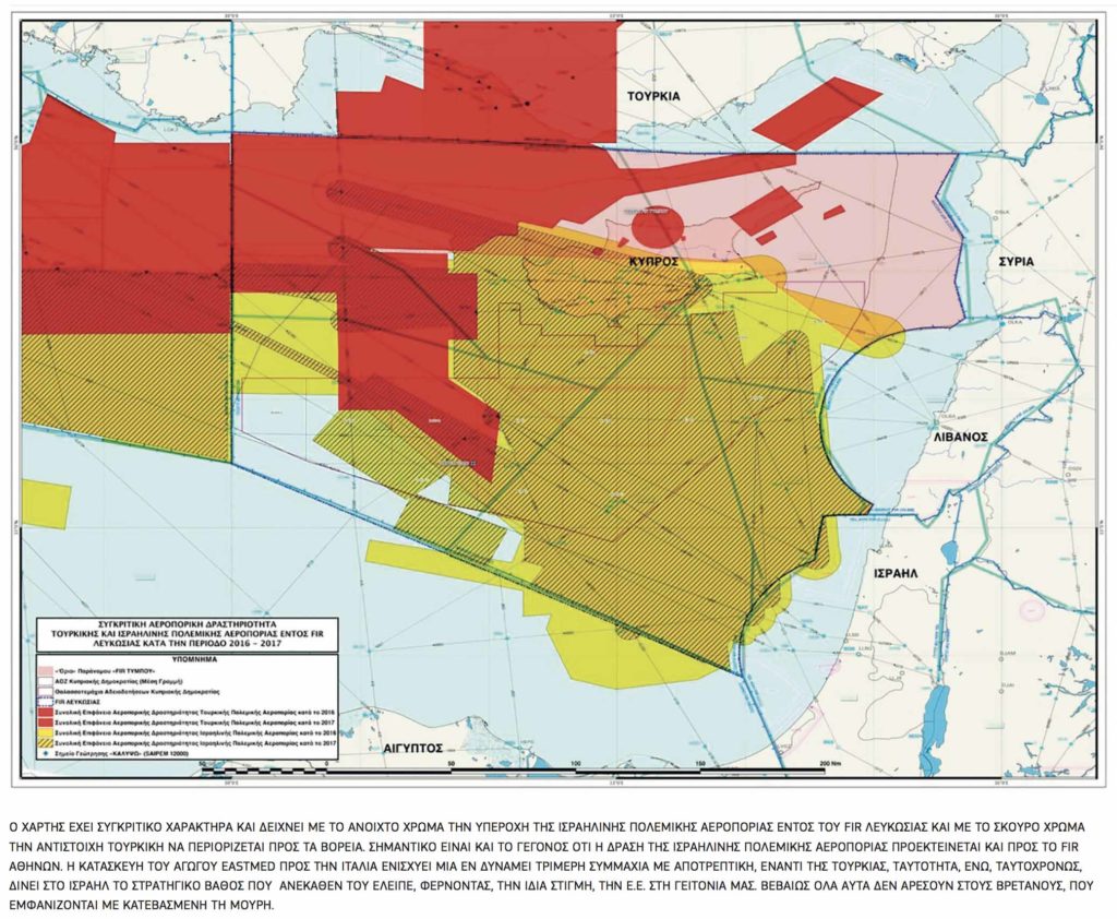 Α. Λόγω των συχνών πτήσεων των πολεμικών αεροσκαφών του Ισραήλ εντός του FIR Λευκωσίας, αισθάνονται να χάνουν ένα βασικό κυρίαρχο πλεονέκτημα, που είχαν ως σήμερα στον αέρα. Το ίδιο ισχύει και για την Τουρκία, η οποία έχει περιορίσει τη δράση της προς τον βορρά, όταν κυρίως πετούν οι Ισραηλινοί στον νότο.