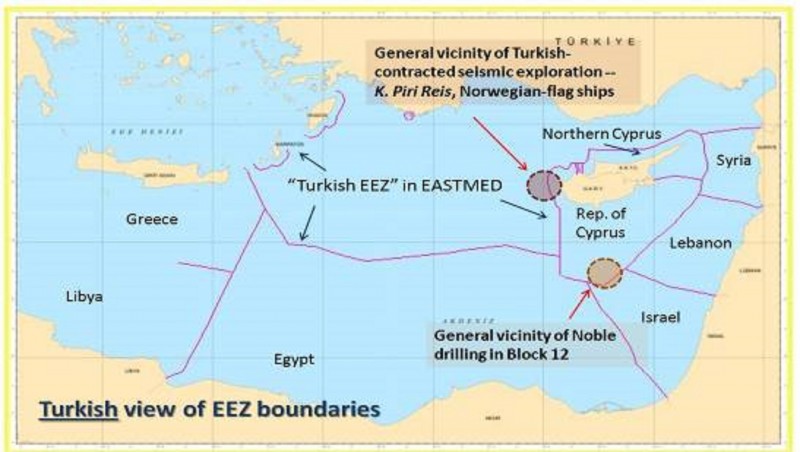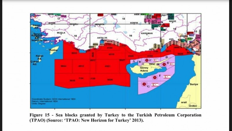 Όπως αποκαλύφθηκε στον ε/κ Τύπο, ήδη από το 2011, η Τουρκία κατέθεσε γραπτώς ενώπιον της ΕΕ συντεταγμένες, διά των οποίων προβάλλει διεκδικήσεις στα χωρικά ύδατα της Κυπριακής Δημοκρατίας. Στις 21 Σεπτεμβρίου του 2011 απέστειλε επιστολή προς τον Γ.Γ. του ΟΗΕ, όπου τον ενημέρωνε για τα εξωτερικά όρια της ηπειρωτικής υφαλοκρηπίδας που καθορίστηκε από τη συμφωνία διαχωρισμού της ηπειρωτικής υφαλοκρηπίδας, η οποία υπεγράφη μεταξύ της Τουρκίας και της «Τουρκικής Δημοκρατίας Βορείου Κύπρου».