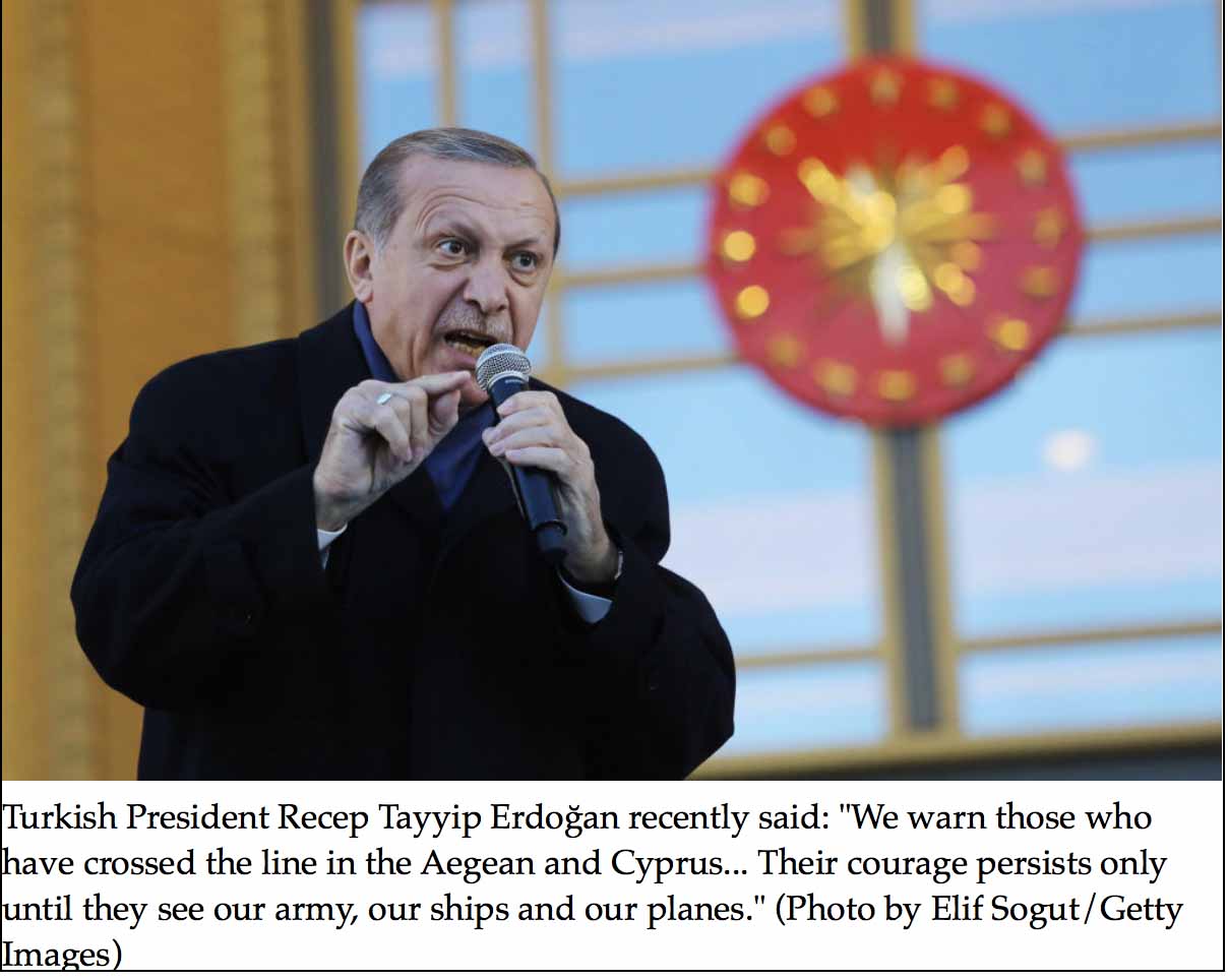“Their courage persists only until they see our army, our ships and our planes… Whatever Afrin is to us, our rights in the Aegean and Cyprus are the same. Do not ever think that the natural gas exploration in the waters of Cyprus and the opportunistic attempts in the Aegean Sea drop off our radar.
