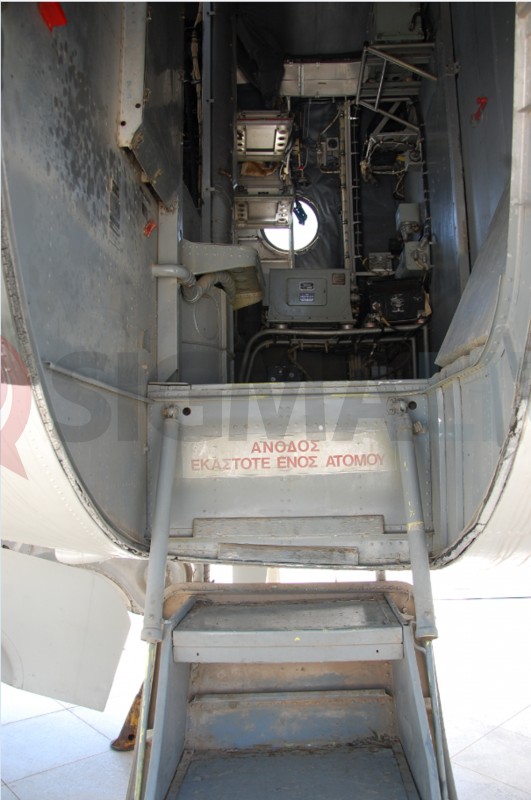 – Και πιο πίσω, εκεί όπου ανεβαίνεις απ’ το έδαφος με τρία σκαλοπάτια κατερχόμενης κλίμακας, στην μπροστά αριστερά είσοδο – τρύπα του αεροσκάφους, που έχει και την πινακίδα «ΑΝΟΔΟΣ ΕΚΑΣΤΟΤΕ ΕΝΟΣ ΑΤΟΜΟΥ», η θέση του Ναυτίλου αρχισμηνία Άνθιμου Ηλία απ’ την Ηλιούπολη Αθηνών…