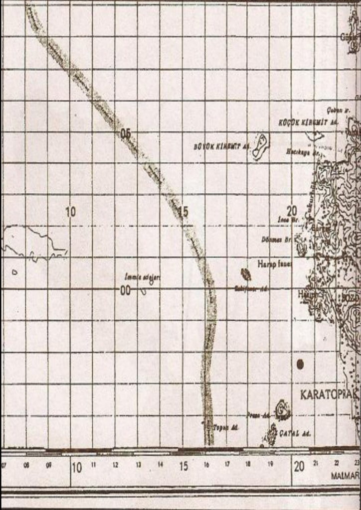 Συγκεκριμένα, παραθέτεται επίσημος «Τουρκικός Χάρτης έκδοσης 1953 της Ετήσιας Έκθεση του Τουρκικού Υπουργείου Εξωτερικών για τη Διέλευση Πλοίων από τα Στενά Βοσπόρου-Δαρδανελίων». Παρουσιάστηκε και δημοσιεύτηκε στη Βουλή των Ελλήνων το 1996 από τον τότε Έλληνα Υπουργό Εξωτερικών. Ο χάρτης εμφανίζει τις νησίδες Ίμια εντός της Ελληνικής Επικράτειας