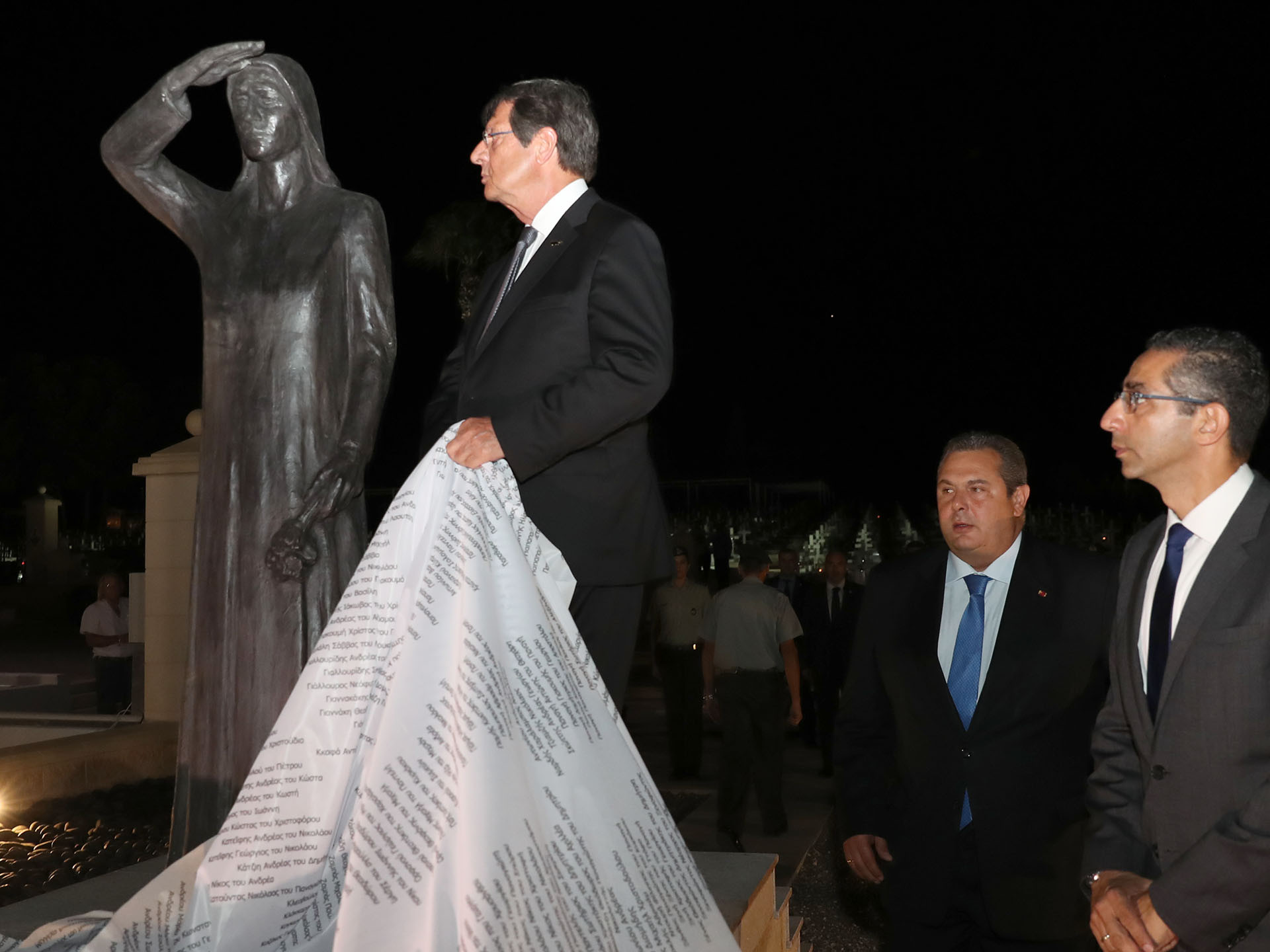 Με την αποκάλυψη του σεπτού αυτού μνημείου αποδίδουμε τον οφειλόμενο φόρο τιμής και ευγνωμοσύνης εκ μέρους της Πολιτείας, Κυπριακής Δημοκρατίας και Ελληνικής Δημοκρατίας, στην κάθε μάνα και στο πρόσωπο αυτής στον κάθε ένα συγγενή που βίωσε και βιώνει τις οδυνηρές συνέπειες που συνιστά το δράμα της αδιευκρίνιστης τύχης των αγνοουμένων μας.
