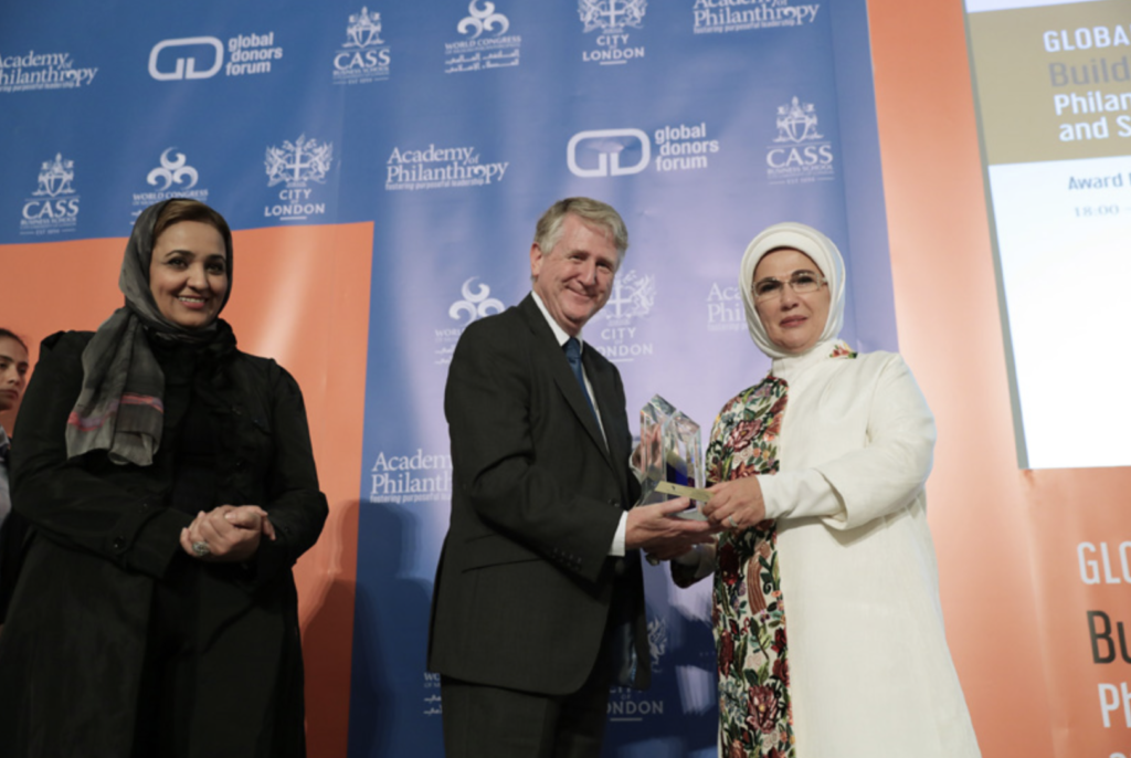 Το μεγάλου κύρους Mansion House στο Λονδίνο χρησιμοποίησαν οι διοργανωτές του Global Donors Forum για να βραβεύσουν την κα Εμινέ Ερτογάν εις αναγνώριση της φιλανθρωπικής της προσφοράς. Της συζύγου του Τούρκου πρωθυπουργού που έριξε χιλιάδες ανθρώπους της χώρας του στις φυλακές, έγραψε η βρετανική Independent.