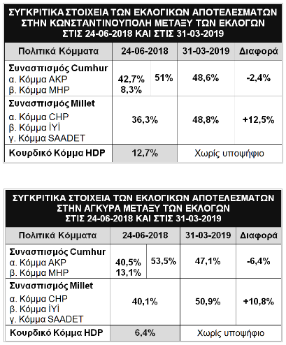 Συνεπώς, ο κουρδικός παράγοντας ήταν αυτός που συνετέλεσε στη εκλογική νίκη της αντιπολίτευσης στην Κωνσταντινούπολη και την Άγκυρα, ενώ οι αντίστοιχοι πίνακες που ακολουθούν επιβεβαιώνουν εμφανώς την παραπάνω εκτίμηση.