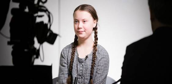 «Η νεαρή σουηδέζα η οποία στο τουίτερ της περιγράφει τον εαυτό της ως « η 16χρονη ακτιβίστρια για κλιματική αλλαγή με το σύνδρομο Aspeerger» ξεκίνησε την πρώτη απεργία για το κλίμα έξω από το κοινοβούλιο στη Σουηδία τον Αύγουστο πέρσι» έγραψε το BBC και πρόσθεσε ότι χάνει μαθήματα τις περισσότερες Παρασκευές για την συνηθισμένη διαμαρτυρία της. Απέκτησε περισσότερη διεθνή προσοχή μετά την ομιλία της στο Συνέδριο για το Κλίμα που διοργάνωσαν τα Ηνωμένο Έθνη στη Πολωνία τον περασμένο Δεκέμβριο (2018). Καθώς και στο Διεθνές Οικονομικό Φόρουμ στο Νταβός της Ελβετίας τον Ιανουάριο (2019)…