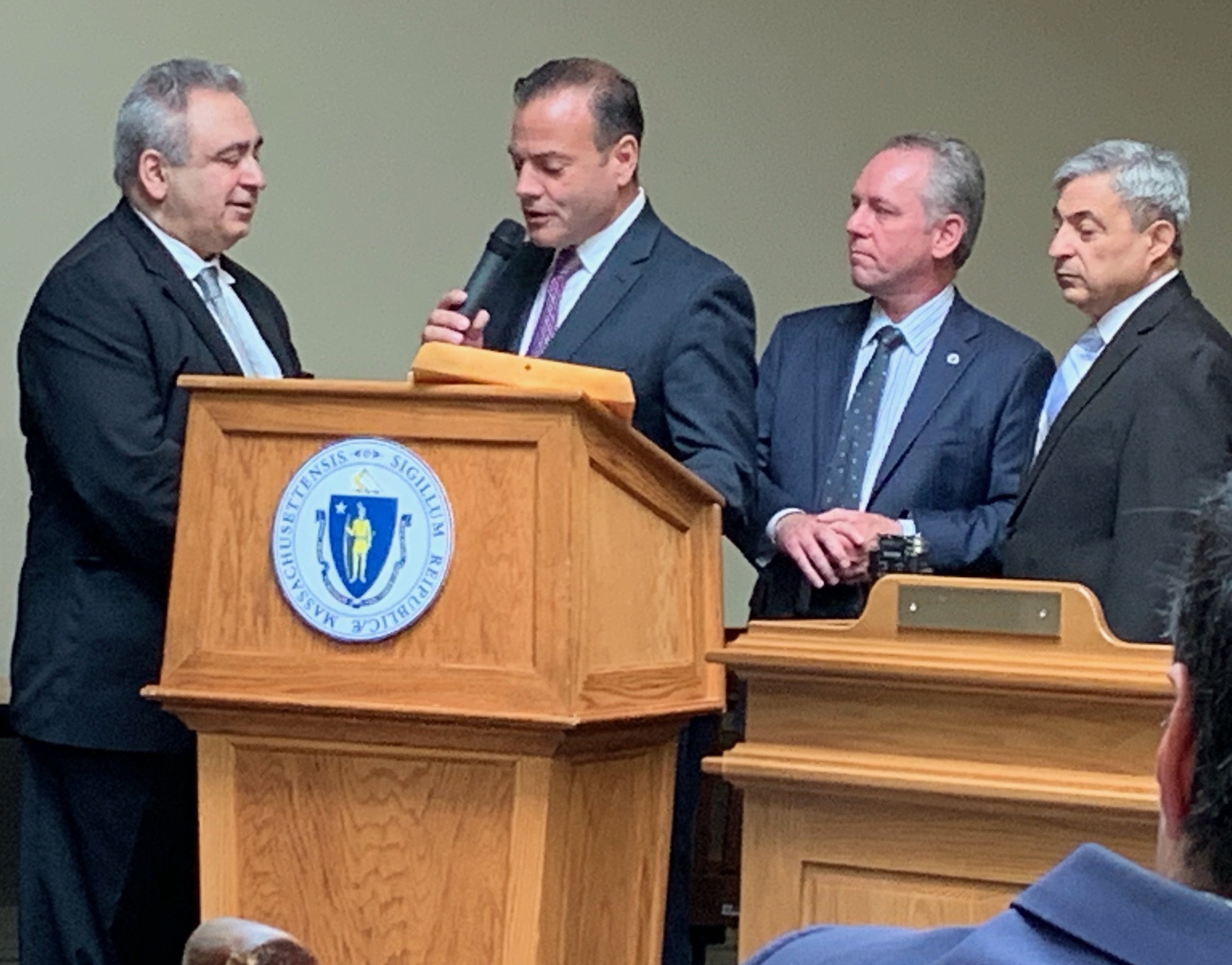 Το ξεκίνημα συνοδεύτηκε με την παρουσίαση υπογραμμένης Διακήρυξης της Κοινοπολιτείας της Μασαχουσέτης για την Γενοκτονία που παρουσιάστηκε από τον πολιτειακό γερουσιαστή Paul McMurtry, τον Jeffrey N. Roy (sponsor of House bill on Genocide education – Σπόνσορα του νομοσχεδίου για την εισαγωγή της ιστορίας των Γενοκτονιών στην πρωτοβάθμια και δευτεροβάθμια εκπαίδευση στην Πολιτεία της Μασαχουσέτης , που επιτρέπει και την συμπερίληψη και της Ποντιακής Γενοκτονίας ως μέρος της ιστορίας) και τον ελληνο-αμερικανό βουλευτή της πολιτείας Ted Speliotis. Παρευρέθηκε για λίγο και ο ελληνο-αμερικανός γερουσιαστής Bruce Tarr.