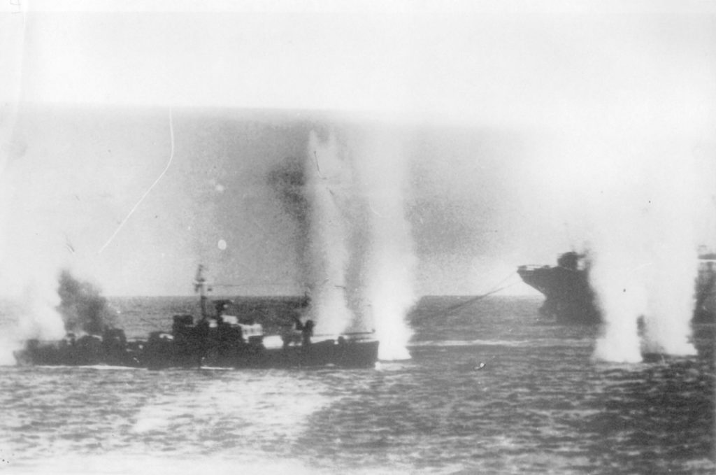 “Έχουν περάσει αρκετά χρόνια από τότε, αλλά είναι κάποιες στιγμές που είναι έντονες. Είχα το πρόβλημα ότι από τα πυροβόλα που είχε το πλοίο, ουσιαστικά πέντε μόνο ένα μπορούσε να ρίξει γιατί δεν είχα πυρομαχικά, ή είχαν γίνει κάποια λάθη στα πυρομαχικά και το δεύτερο είναι γιατί είχα μόνο μια μηχανή. Θυμάμαι λοιπόν και δεν θα το ξεχάσω ποτέ, ότι κάλεσα το πλήρωμα και τους είπα ότι “εκτιμώ ότι σε λίγη ώρα θα έρθουν τα αεροπλάνα” και φυσικά κάποιοι θα σκοτωθούν και κάποιοι θα τραυματιστούν. Τότε τους είπα “αν υπάρχει κάποιος λόγος, έχετε παιδιά, μανάδες, γυναίκες και θέλετε να φύγετε ή φοβάστε μπορείτε να φύγετε”. Εγώ βέβαια ήμουν μόνιμος αξιωματικός και είχα μάθει ότι όταν το πλοίο πλέει και έστω και ένα πυροβόλο να υπάρχει δεν φεύγεις. Δεν έφυγε κανένας από το πλήρωμα και αυτό έχω να το λέω γιατί με εντυπωσίασε γιατί όπως σας είπα δεν είχαμε παρά μόνο πυροβόλο, οι σκοπευτές ήθελαν να κρυφτούν κάπου γιατί θα σκοτωνόντουσαν και κάποιοι σκοτώθηκαν. Το δεύτερο που θυμάμαι είναι όταν ήρθαν τα αεροπλάνα ο φόβος ήταν μεγάλος, και εκείνη τη στιγμή μετά από τόσα χρόνια έχω κατασταλάξει ότι ο άνθρωπος δεν είναι ήρωας απλώς έχει να διαλέξει, ενστικτωδώς, ή να εγκαταλείπει στη θάλασσα ή κάθεται. Σε μένα έτυχε το δεύτερο. Αυτά είναι τα δυο βασικά στοιχεία που θυμάμαι από τη στιγμή που ήρθαν τα αεροπλάνα, δηλαδή που ξεκίνησε η μάχη”.