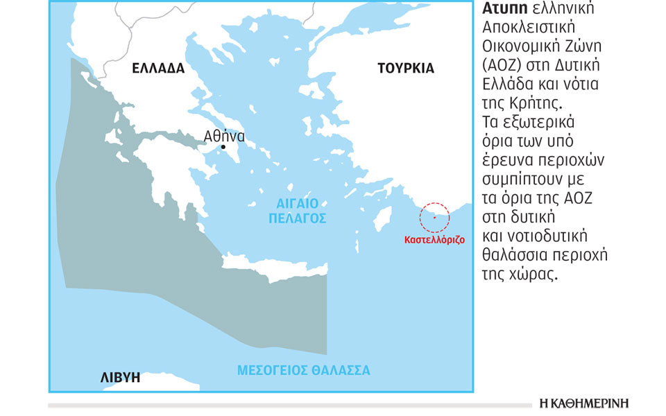 Βάσει τελευταίων πληροφοριών, η Αγκυρα ευρίσκεται σε προχωρημένο στάδιο διαπραγματεύσεων με την αναγνωρισμένη από τον ΟΗΕ κυβέρνηση Φαγέζ Αλ Σαράτζ, η οποία όμως υποστηρίζεται διπλωματικά και στρατιωτικά από την Τουρκία, παρά την εμπόλεμη κατάσταση που επικρατεί στην Κυρηναϊκή (βλέπε επέλαση των δυνάμεων του στρατηγού Χαλίφα Χαφτάρ εναντίον της Τρίπολης), με στόχο την υπογραφή διακρατικής συμφωνίας καθορισμού ορίων ΑΟΖ. Η συμφωνία αυτή, εάν υπογραφεί και παρά την πιθανολογούμενη αλλαγή κυβέρνησης (οπότε και θα αμφισβητηθεί για την εγκυρότητά της), δημιουργεί ένα κακό προηγούμενο και εμφανίζει την Ελλάδα αδύναμη να αντιδράσει, αποδεχόμενη τη δικαιοδοσία Τουρκίας – Λιβύης επί της ΑΟΖ της. Παράλληλα, όπως υποστήριξε ο Κωνσταντίνος Νικολάου στο δημοσίευμα του στην «Καθημερινή» της 4/8, η Τουρκία ήδη διεξάγει σχετικές έρευνες στην περιοχή του Καστελλόριζου εντός της ελληνικής υφαλοκρηπίδας και όλες οι ενδείξεις είναι ότι σύντομα θα προχωρήσει σε γεώτρηση.