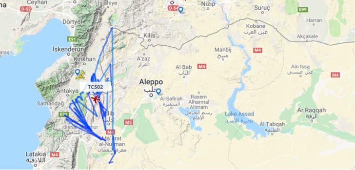 Τέλος, ο τρίτος χάρτης παρουσιάζει το σάρωμα που γίνεται από τουρκικά μη επανδρωμένα αεροσκάφη στη Συρία. Κινούνται πάνω από τα σύνορα Τουρκίας-Συρίας και προχωρούν σε βάθος εντός του συριακού εδάφους με σαφή πρόθεση να σαρώσουν και τις εν λόγω περιοχές.