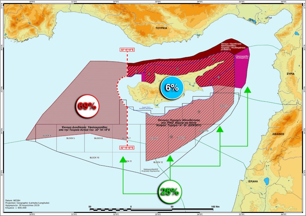 Η τουρκική ανακατανομή της ΑΟΖ: Η Άγκυρα δίνει 25% στους γείτονες, παίρνει 41% η ίδια, αφήνει 34% στην ομοσπονδία και πώς περιορίζει τους Ε/κ στο 6%