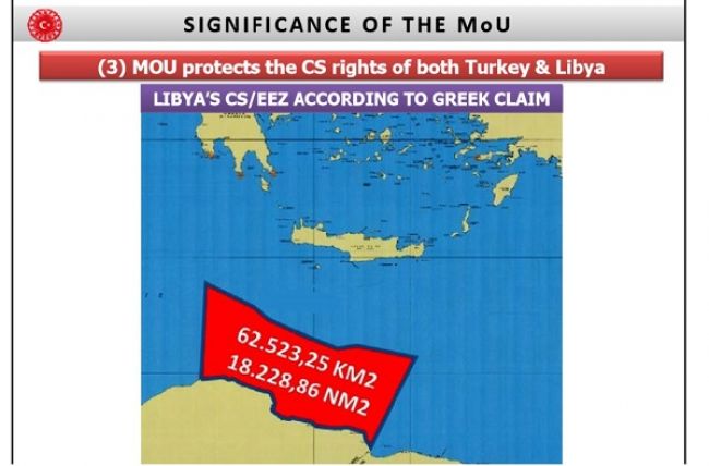 Και τα Οικόπεδα τα οποία έχει οριοθετήσει εντός της ελληνικής υφαλοκρηπίδας η χώρα μας νότια της Κρήτης βάζει στο στόχαστρο η Τουρκία με όχημα την κυβέρνηση Σαράζ, καθώς στην ιστοσελίδα του τουρκικού υπουργείου εξωτερικών αναρτήθηκε πολυσέλιδη παρουσίαση των θέσεων της Τουρκίας για την Ανατολική Μεσόγειο, όπου επισημαίνεται ότι με το Μνημόνιο θα προστατευθούν και τα δικαιώματα της Λιβύης έναντι της Ελλάδας.