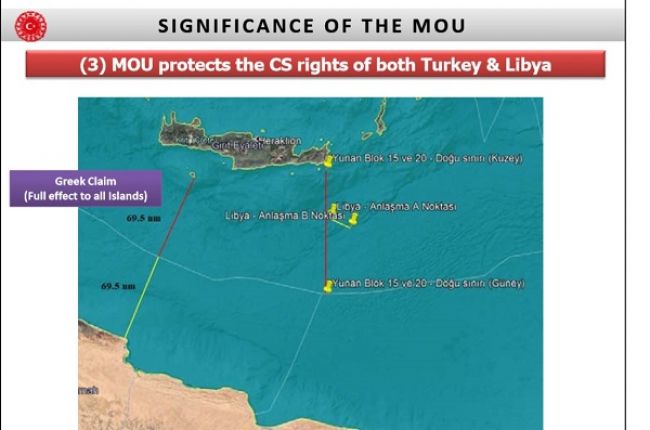 4. Το MοU αντανακλά τις νομικές απόψεις της Τουρκίας και της Λιβύης για την οριοθέτηση θαλασσίων ζωνών