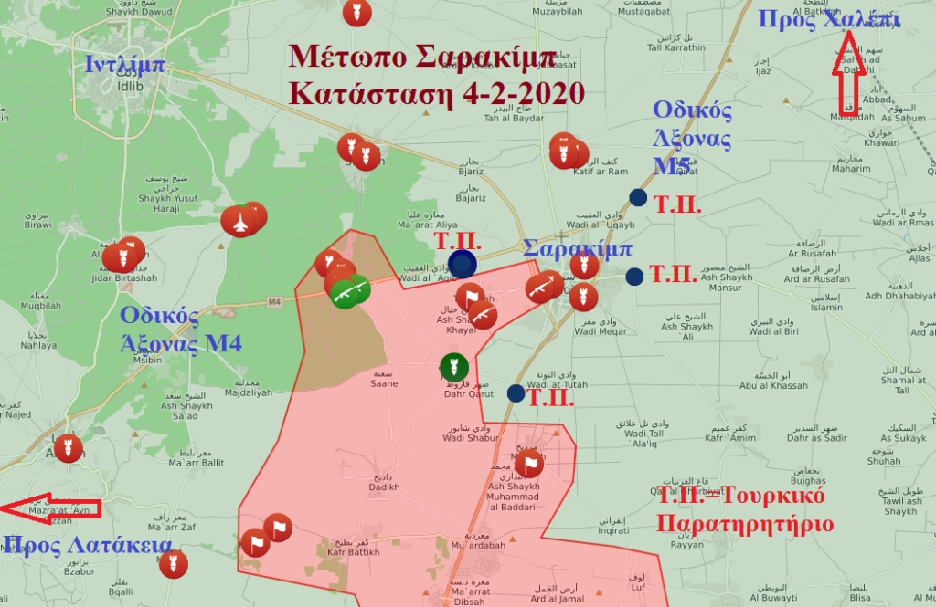 Η κατάσταση περί την κωμόπολη Σαρακίμπ, όπως είχε διαμορφωθεί το πρώι της 4ης Φεβρουαρίου 2020