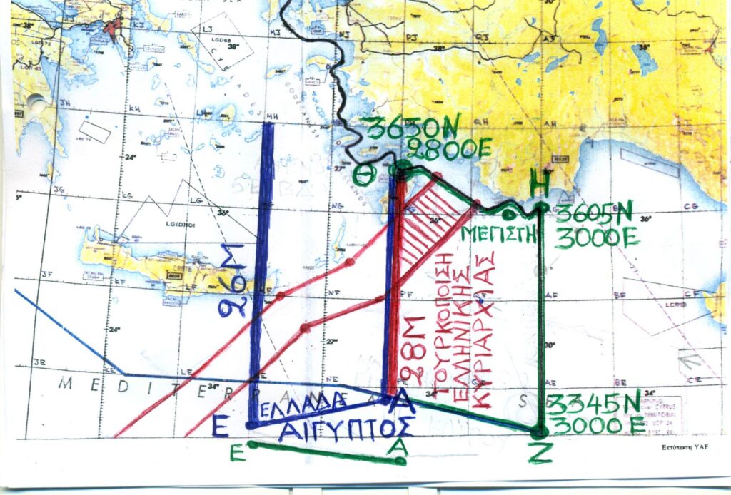 Ο καθορισμός της μέσης γραμμής ΑΟΖ μεταξύ Ελλάδας και Αιγύπτου από τον 26ο έως τον 28ο μεσημβρινό, χωρίς ελληνική διεκδίκησή-CLAIΜ από τον 28ο έως τον 30ο μεσημβρινό αφήνει ακάλυπτη την περιοχή ανατολικά του 28ου μεσημβρινού και επιτρέπει την τουρκοποίηση της ελληνικής κυριαρχίας. Επιτρέποντας στον Τσαβούσογλου να δηλώνει διεθνώς ότι το Όρους Ρέις επιχειρεί ανατολικά του 28ου μεσημβρινού, γι’ αυτό και δεν θίγει την ελληνο/αιγυπτιακή Συμφωνία, η οποία είναι στα μέτρα της Τουρκίας.