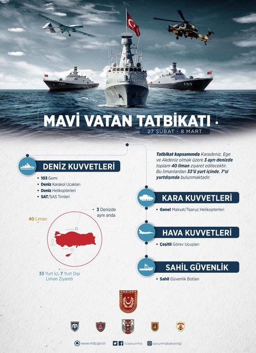 Ο Πρόεδρος Ερντογάν αποκάλυψε ότι αυτό το «όραμα» σχετίζεται με την «επιτυχημένη ολοκλήρωση των πολιτικών, στρατιωτικών και οικονομικών μας προσπαθειών, που εκτείνονται σε μια μεγάλη περιοχή από τη Συρία και τη Λιβύη έως την Ανατολική Μεσόγειο και τον Εύξεινο Πόντο».