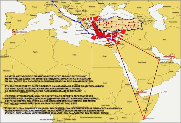 5) Τον ευρύτερο τουρκικό σχεδιασμό, που εντάσσει την Κύπρο στο λεγόμενο τρίγωνο του διαβόλου, το οποίο περιλαμβάνει τις Βάσεις της Άγκυρας στο Κατάρ και στη Σομαλία, έχοντας ως τρίτη κορυφή του τριγώνου την Κύπρο.