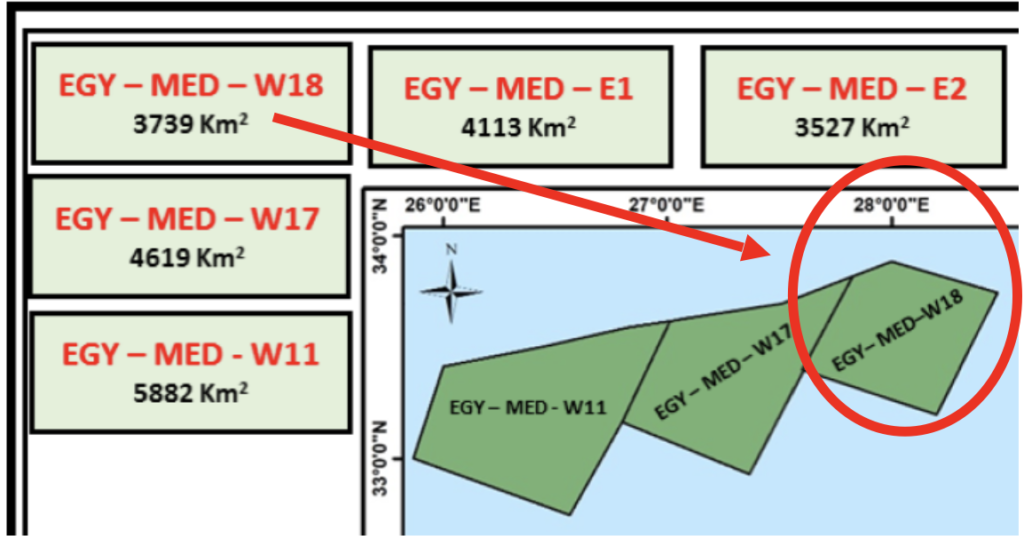 Μελετώντας τον χάρτη που περιλαμβάνεται στην προκήρυξη, βλέπουμε ότι το οικόπεδο με την κωδική ονομασία EGY-MED-W18 εκτείνεται πέραν του 28ου μεσημβρινού που αποτελεί το ανατολικό όριο (Σημείο Α), της πρόσφατης μερικής συμφωνίας οριοθέτησης ΑΟΖ μεταξύ Ελλάδας και Αιγύπτου, η οποία υπεγράφη στις 6 Αυγούστου 2020 στην πρωτεύουσα της Αιγύπτου μεταξύ των Υπουργών Εξωτερικών των 2 χωρών.
