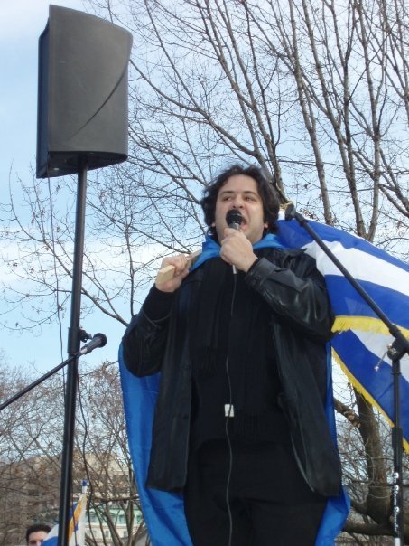 Ο Νικόλαος Τανέρης κατά την διάρκεια της ομιλίας του στο μεγαλειώδες συλλαλητήριο της ομογένειας κατά της Συμφωνίας των Πρεσπών τον Μάρτιο του 2018. Φωτογραφία: Facebook