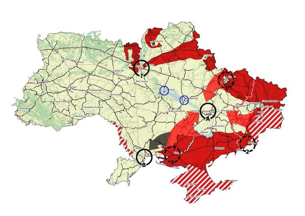 Ο χάρτης αποτυπώνει την κατάσταση επί του εδάφους και τις περιοχές που ο ρωσικός στρατός κατάφερε να θέσει υπό τον έλεγχό του. Είναι πρόδηλον ότι αφενός βρίσκει αντίσταση την οποία ενδεχομένως δεν υπολόγιζε και, αφετέρου, δεν έχει κατορθώσει να φτάσει στην Οδησσό, έτσι ώστε: Α. Να ενώσει εδαφικά το πέταλο από τα νοτιοανατολικά της Ουκρανίας ώς την Υπερδνειστερία. Β. Να μετατρέψει την Ουκρανία σε «κλειστό κράτος». Δηλαδή, να μην της αφήσει έξοδο στη θάλασσα.