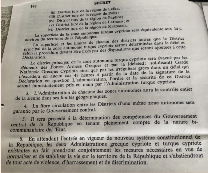 Δημιουργείται το ερώτημα: Ποία ήσαν τα 6 σημεία σε σύνολο, μήπως περιελάμβαναν και «καντόνια»; Έχοντας υπόψη το τι είχε πει και ο Κληρίδης στον Χάρτμαν;