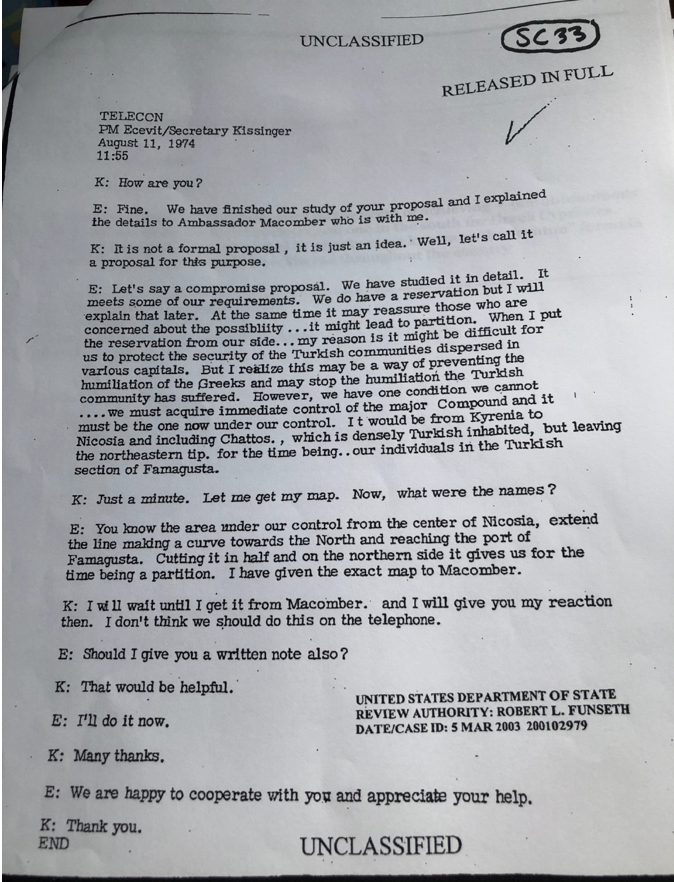 11/8/74 Τηλεφωνική συνομιλία Κίσινγκερ/Ετσεβιτ