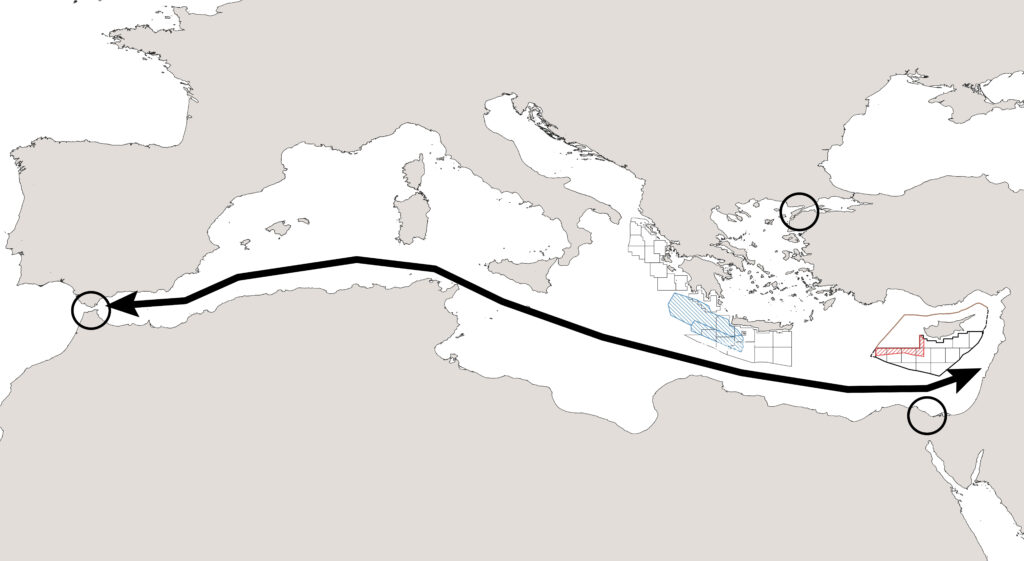 Ο γαλλικός στρατηγικός δίαυλος έχει αεροναυτικό χαρακτήρα και ξεκινά από το Σουέζ, που συνιστά σημαντικό “chokepoint” – δηλαδή μιαν από τις οκτώ σημαντικές διαβάσεις των θαλάσσιων οδών παγκοσμίως. Ακολούθως, περνά από τα νότια της Κύπρου και της Κρήτης, διασχίζει τα ανοικτά της Λιβύης, της Τυνησίας και αγγίζει τα όρια του Γιβραλτάρ, όπου βρίσκεται το άλλο στρατηγικό “chokepoint”, που τελεί υπό τον έλεγχο των Βρετανών. Ο εν λόγω στρατηγικός δίαυλος έχει γεωπολιτικό χαρακτήρα, που συνδέεται με τα συμφέροντα της Γαλλίας στην περιοχή μας, όπως είναι, για παράδειγμα, η ασφάλεια της ενέργειας. Στέλνει, ταυτοχρόνως, το μηνύματα, χωρίς να προκαλεί, προς την Τουρκία, τη Ρωσία και τη Βρετανία ότι το Παρίσι είναι παρόν στη γειτονιά μας. Στρατιωτικές και διπλωματικές πήγες τονίζουν: