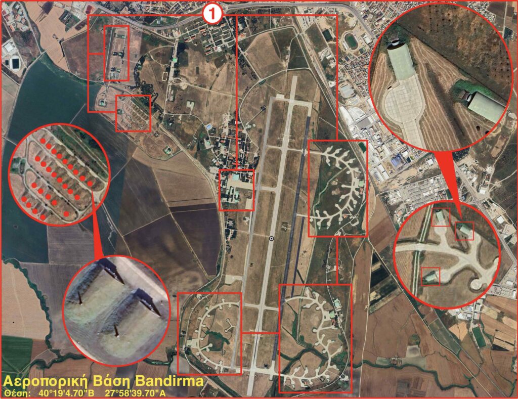 H τουρκική πολεμική αεροπορία διαθέτει, μεταξύ άλλων, τα εξής στρατηγικά σημεία, που συνδέονται με τις απειλές εναντίον της Κύπρου και της Ελλάδας: