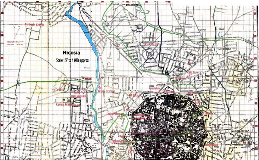 Τέλος πρέπει να αναφέρω πως οι Βρετανοί, μετά από τις πρώτες επιθέσεις των τουρκικών όχλων την δεκαετία του 1950, στις 30 Μαΐου 1956 επέβαλαν την πρώτη διαίρεση – διχοτόμηση στην εντός των τειχών Λευκωσία. Όταν ομάδα του βρετανικού στρατού με επικεφαλής τον Ταγματάρχη Τάγκαρτ, με σιδερένιους στύλους και συρματόπλεγμα χώρισαν στα δύο την πόλη, από την Πύλη Πάφου μέχρι τον Άγιο Κασσιανό.