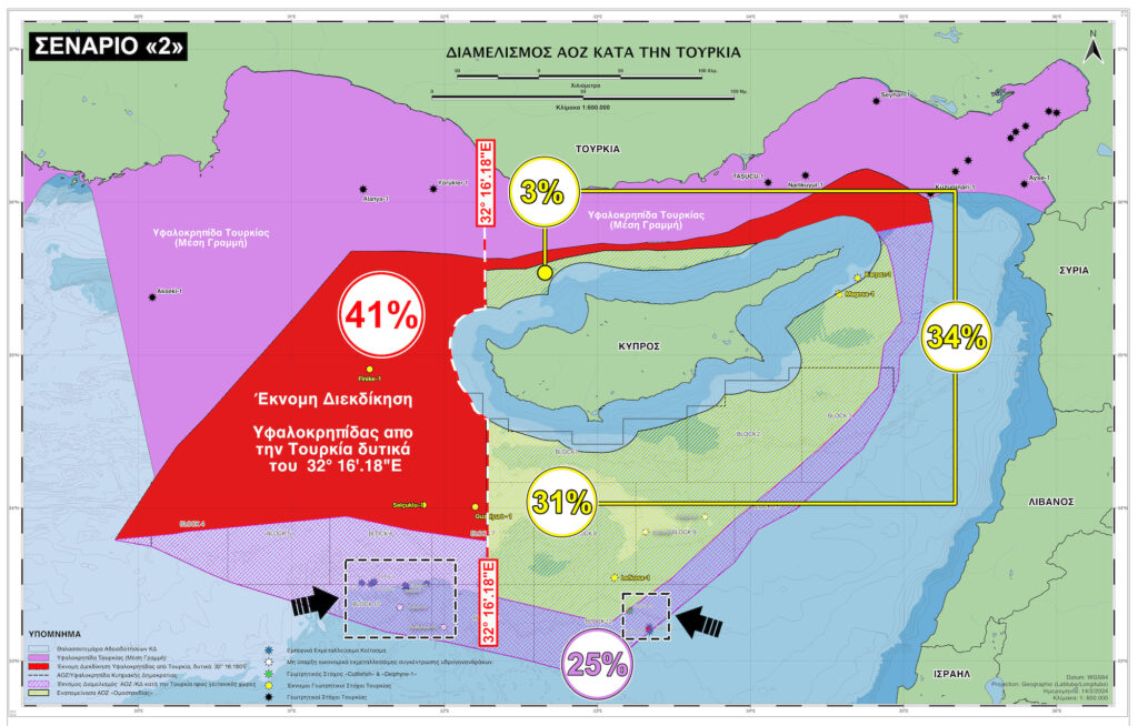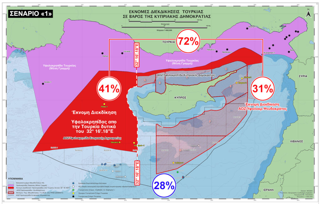 Υπάρχουν, μεταξύ άλλων, δυο σενάρια, τα οποία θα ήταν δυνατό να εξελιχθούν με βάση τα όσα οι Τούρκοι έκνομα διεκδικούν από την Κυπριακή Δημοκρατία σε επίπεδο ΑΟΖ και υφαλοκρηπίδας.
