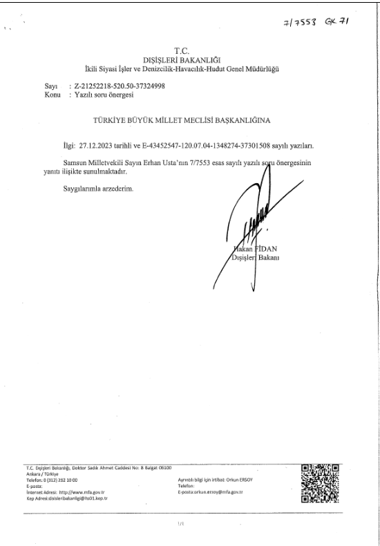 Η επιστολή του Τούρκου υπουργού Εξωτερικών Χακάν Φιντάν: