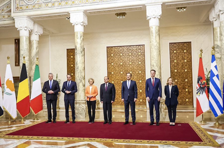Στη συνάντηση, που διήρκησε πέραν της μιας ώρας, έλαβαν μέρος ο Πρόεδρος της Δημοκρατίας Νίκος Χριστοδουλίδης, ο Πρόεδρος της Αιγύπτου Αμπντέλ Φατάχ αλ Σίσι, η Πρόεδρος της Ευρωπαϊκής Επιτροπής Ούρσουλα φον ντερ Λάιεν, και οι Πρωθυπουργοί της Ελλάδας Κυριάκος Μητσοτάκης, της Ιταλίας Τζόρτζια Μελόνι και του Βελγίου Αλεξάντερ ντερ Κρόο και ο Καγκελάριος της Αυστρίας Καρλ Νεχάμερ.