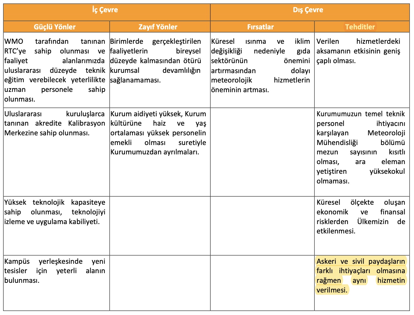 An excerpt from the strategic MGM report highlights that Turkey’s weather service provides the same access to both civilian and military clients and categorizes this practice as a risk: