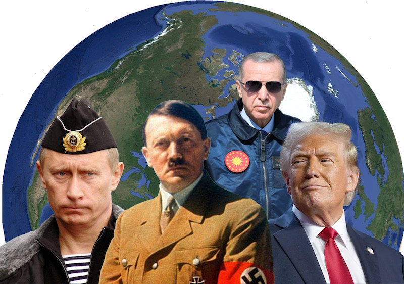 Σε τι διαφέρουν μεταξύ τους ο Χίτλερ, ο Τραμπ, ο Πούτιν, ο Ερντογάν; Απλώς στις μεθόδους που χρησιμοποίησαν για την κατάληψη της εξουσίας. Ταυτίζονται, όμως, στην άσκηση της ίδιας επεκτατικής, κατακτητικής πολιτικής. Ο Χίτλερ ήταν ένας γενοκτόνος 6 εκ. Εβραίων, άρπαγας και κατακτητής χωρών. Ο Τραμπ είναι ένας δημοκρατικά εκλεγμένος Πρόεδρος των ΗΠΑ. Αλλά είναι ένας αλαζόνας ηγέτης που κομπάζει ότι η χώρα του δεν κατακτιέται, δεν εκφοβίζεται, δεν αποτυγχάνει και γι’ αυτό χρησιμοποιεί την ισχύ της για να απειλήσει, να εκφοβίσει, να παρέμβει ή να αρπάξει χώρες.