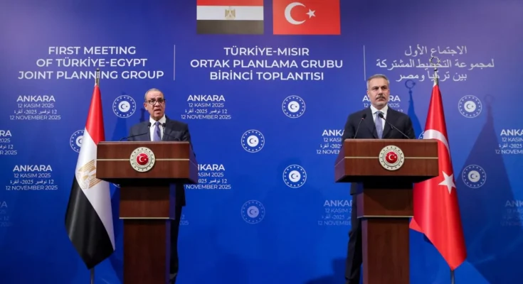 Ο Αιγύπτιος υπουργός Εξωτερικών Μπαντρ Αμπντελάτι επισκέφθηκε την Άγκυρα για συνομιλίες με τον Τούρκο ομόλογό του Χακάν Φιντάν, στο πλαίσιο της συνεδρίασης της Κοινής Ομάδας Σχεδιασμού Τουρκίας–Αιγύπτου. Η συνάντηση συνδέεται με την προετοιμασία της δεύτερης Συνόδου του Ανώτατου Συμβουλίου Στρατηγικής Συνεργασίας, η οποία προγραμματίζεται για το 2026 στο Κάιρο.