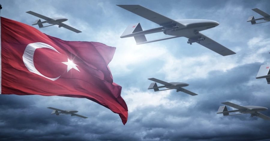 • Η αύξηση των μη επανδρωμένων αεροσκαφών (drones) στην Τουρκία είναι πραγματική και σημαντική: Μέσα σε λίγα χρόνια, η Τουρκία έχει κατασκευάσει έναν παγκοσμίως ανταγωνιστικό τομέα UAV. Τα επιθετικά drones Bayraktar TB2 και οι πιο προηγμένες παραλλαγές τους έχουν παράσχει στην Άγκυρα τη δυνατότητα να επιτίθεται πολύ πέρα από τα σύνορά της με σχετικά χαμηλό κόστος. [16] Η Τουρκία πλέον πωλεί εκτενώς αυτήν την τεχνολογία και κυριαρχεί στη διεθνή αγορά οπλισμένων drones.