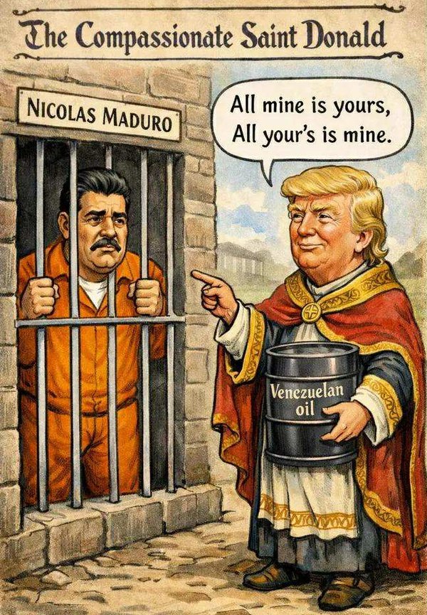 Τώρα όλοι ξέρουν με τον πιο σκληρό τρόπο πώς δρα ο Αμερικανός Πρόεδρος. Κυνική προειδοποίηση: Να μη διανοηθεί κανείς στο εξής να παίξει παιγνίδια με τον πλανητάρχη. Το μήνυμα ελήφθη ειδικά από τη Ρωσία, την Κίνα, το Ιράν και την Κούβα (και την Τουρκία). Οι χώρες αυτές υποστήριζαν το καθεστώς Μαδούρο και επένδυσαν δισεκατομμύρια σε υποδομές, διοίκηση, άμυνα και πετρέλαιο. Μόνο που διέπραξαν βαρύτατο… αμάρτημα:
