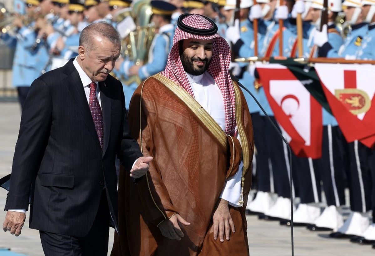 Η συμφιλίωση Τουρκίας-Σαουδικής Αραβίας είναι ιδιαίτερα σημαντική. Μετά από χρόνια έντασης μετά τη δολοφονία του δημοσιογράφου Τζαμάλ Κασόγκι το 2018 στην Κωνσταντινούπολη, η Άγκυρα και το Ριάντ έχουν πλέον κινηθεί αποφασιστικά προς τη στρατηγική συνεργασία. Οι συζητήσεις με τον Σαουδάραβα πρίγκιπα διάδοχο Μοχάμεντ μπιν Σαλμάν παρήγαγαν σημαντικές συμφωνίες, συμπεριλαμβανομένης μιας επένδυσης 2 δισεκατομμυρίων δολαρίων της Σαουδικής Αραβίας σε έργα ανανεώσιμων πηγών ενέργειας στην Τουρκία, με στόχο 5.000 μεγαβάτ ηλιακής ισχύος. Η αμυντική συνεργασία επεκτάθηκε για να συμπεριλάβει μεταφορές τεχνολογίας για τουρκικά drones και συστήματα αεράμυνας. Το διμερές εμπόριο αναμένεται να φτάσει τα 50 δισεκατομμύρια δολάρια.