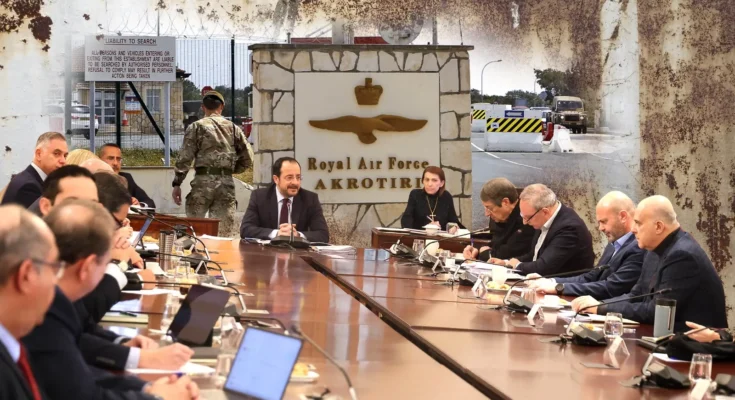 Σύμφωνα με τις πληροφορίες μας, ο Πρόεδρος Χριστοδουλίδης ενημέρωσε χθες το Εθνικό Συμβούλιο για τις ενέργειες που έχουν γίνει σε σχέση με το θέμα των βρετανικών Βάσεων και για το πώς ο ίδιος έχει προσεγγίσει το ζήτημα. Φαίνεται, από τα όσα έχουν λεχθεί ενώπιον του Εθνικού Συμβουλίου, ότι, εκ πρώτης όψεως, η βρετανική Κυβέρνηση δεν φαίνεται να είναι αρνητική όσον αφορά τον διάλογο στο πλαίσιο μιας τεχνικής επιτροπής. Ωστόσο, η θέση των Βρετανών είναι πως οι ΒΒ προστατεύουν την Κύπρο. Αυτό που προκύπτει επίσης είναι ότι, από μέρους των Βρετανών, υπήρξε ενόχληση για την αναφορά στο θέμα των Βάσεων στο κείμενο συμπερασμάτων του Ευρωπαϊκού Συμβουλίου.