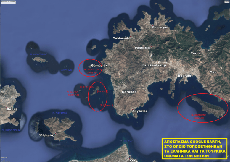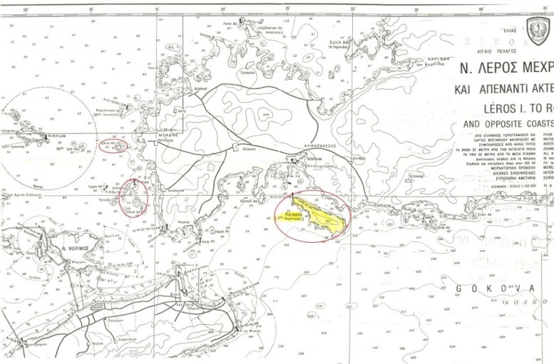 Αναφέρομαι στα νησιά Αρκόνησος ή Ακρόνησος (Karaada) απέναντι από την Αλικαρνασσό (Bodrum), τα Τσατάλια (Gatalada, Tüllüse ad) απέναντι από το Karatoprak και τους Άγιους Απόστολους (Gavus ad) απέναντι από το Gümuslük.