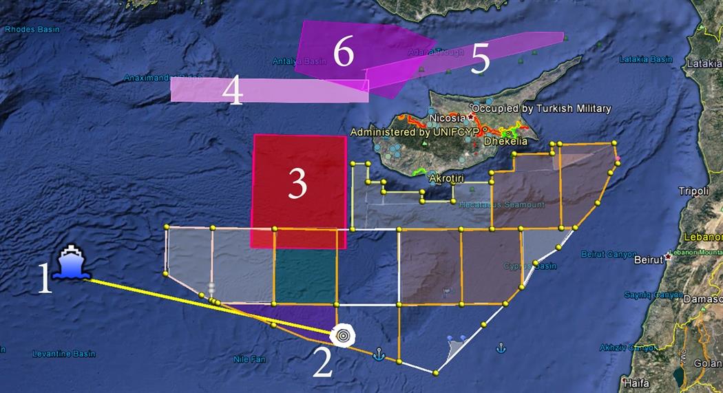 Συγκεκριμένα, σήμερα από τις; 11.00 μέχρι τις 4.00 το απόγευμα αναγγέλθηκαν ασκήσεις «έρευνας και διάσωσης σε μια ζώνη μήκους 100 χλμ και πλάτους 25 χλμ. Βορειοδυτικά της Κύπρου. (Νο. 4)
