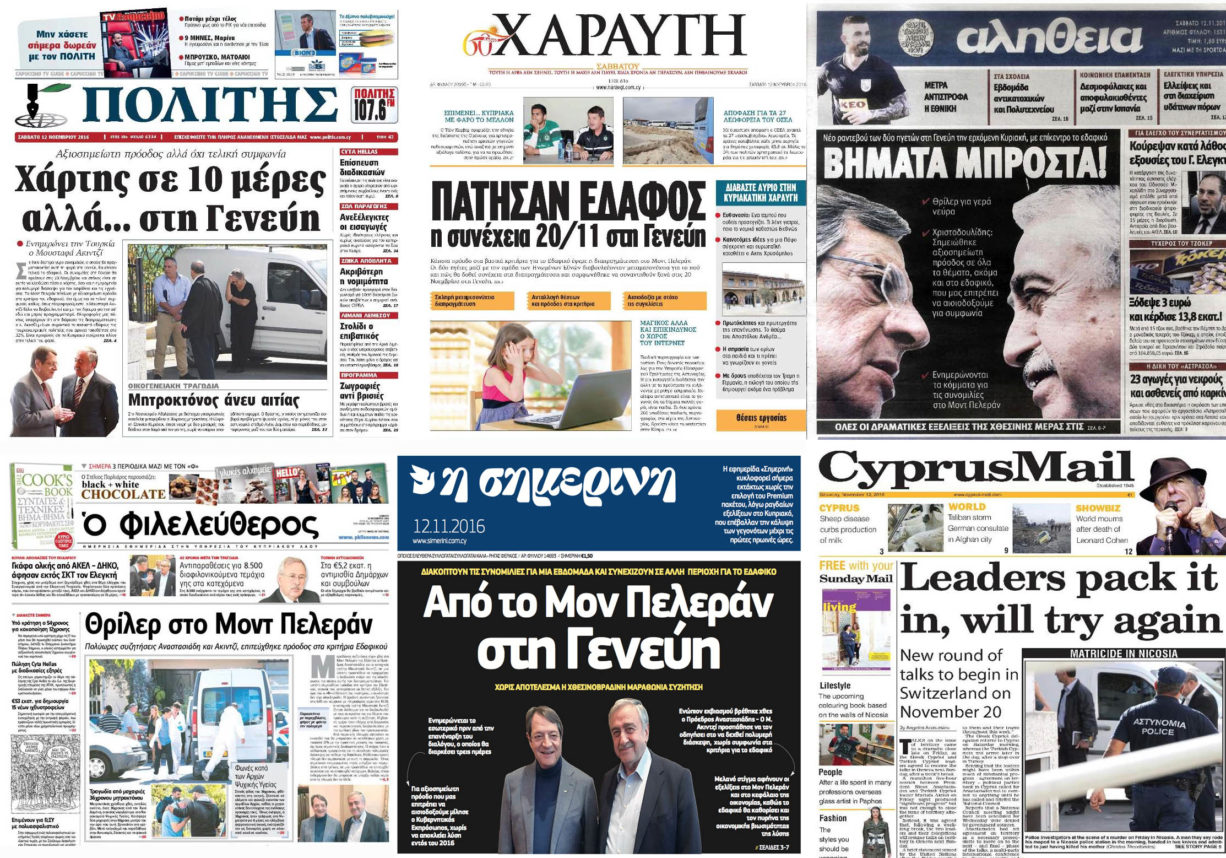 ΚΥΠΕ, Λευκωσία, Κύπρος 12 Νοε 2016 Οι τελευταίες εξελίξεις στο Μοντ Πελεράν και η απόφαση των ηγετών, μετά από πολύωρες συνομιλίες χθες βράδυ, για συνέχιση της διαπραγμάτευσης στη Γενεύη στις …