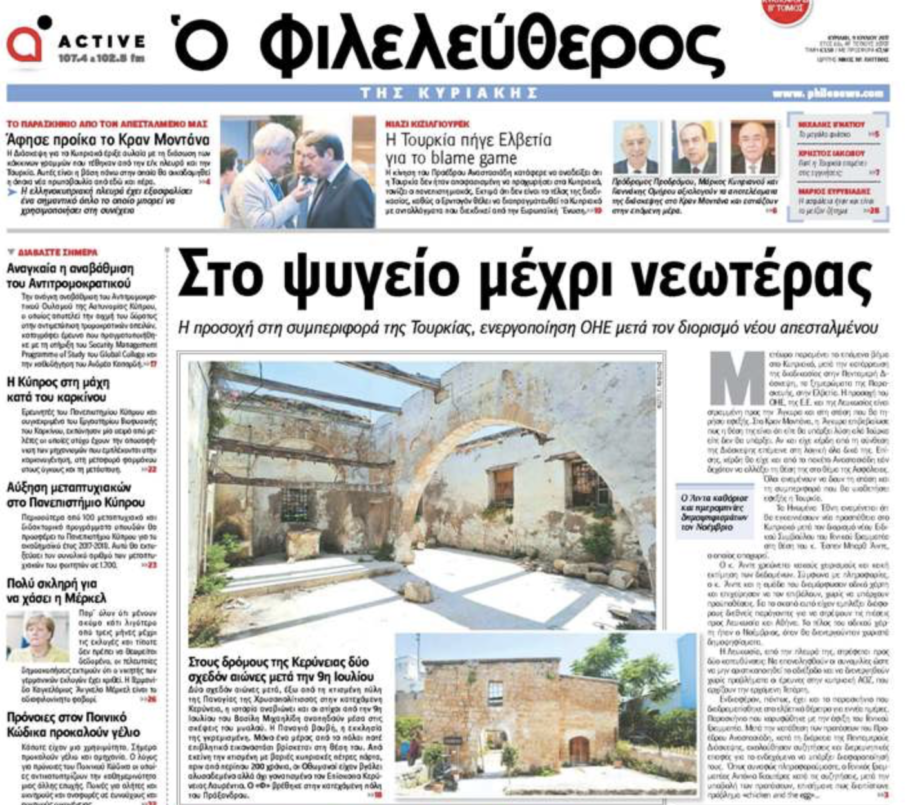 9 ΙΟΥΛΙΟΥ 2017 του Κώστα Βενιζέλου Σε νέα φάση εισέρχεται το Κυπριακό μετά την κατάρρευση της διαδικασίας στο Κραν Μοντάνα τα ξημερώματα της περασμένης Παρασκευής. Οι βασικοί πρωταγωνιστές αναμένεται να …